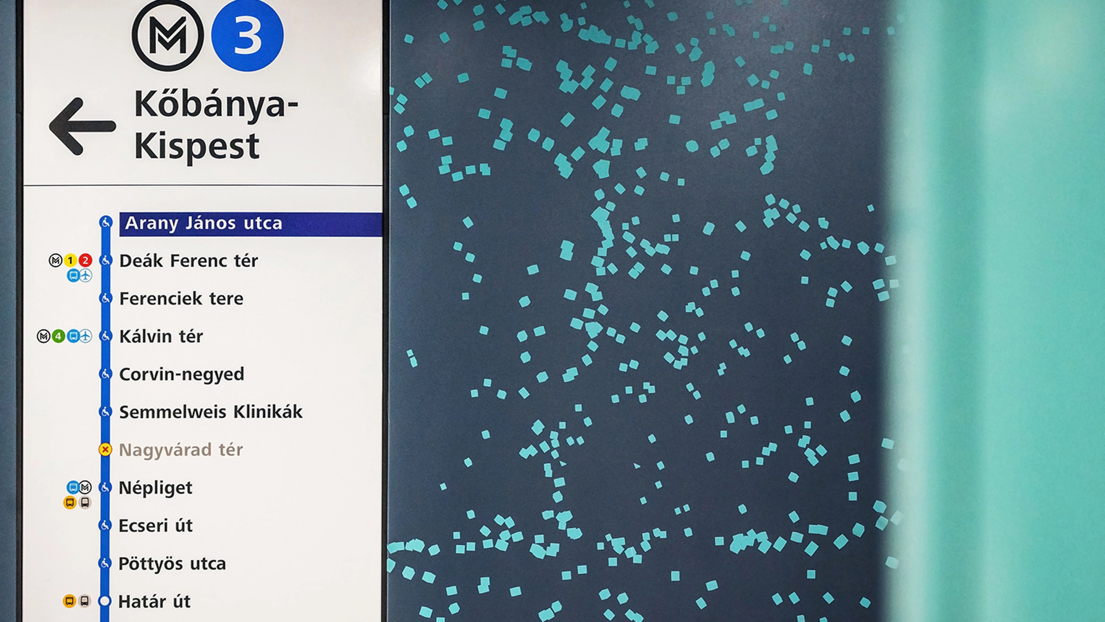 At Arany János utca metro station, we created a generative graphic system that ties Budapest’s contemporary rhythm to a literary reference—János Arany’s Tölgyek alatt—using an oak-tree motif as the conceptual seed.